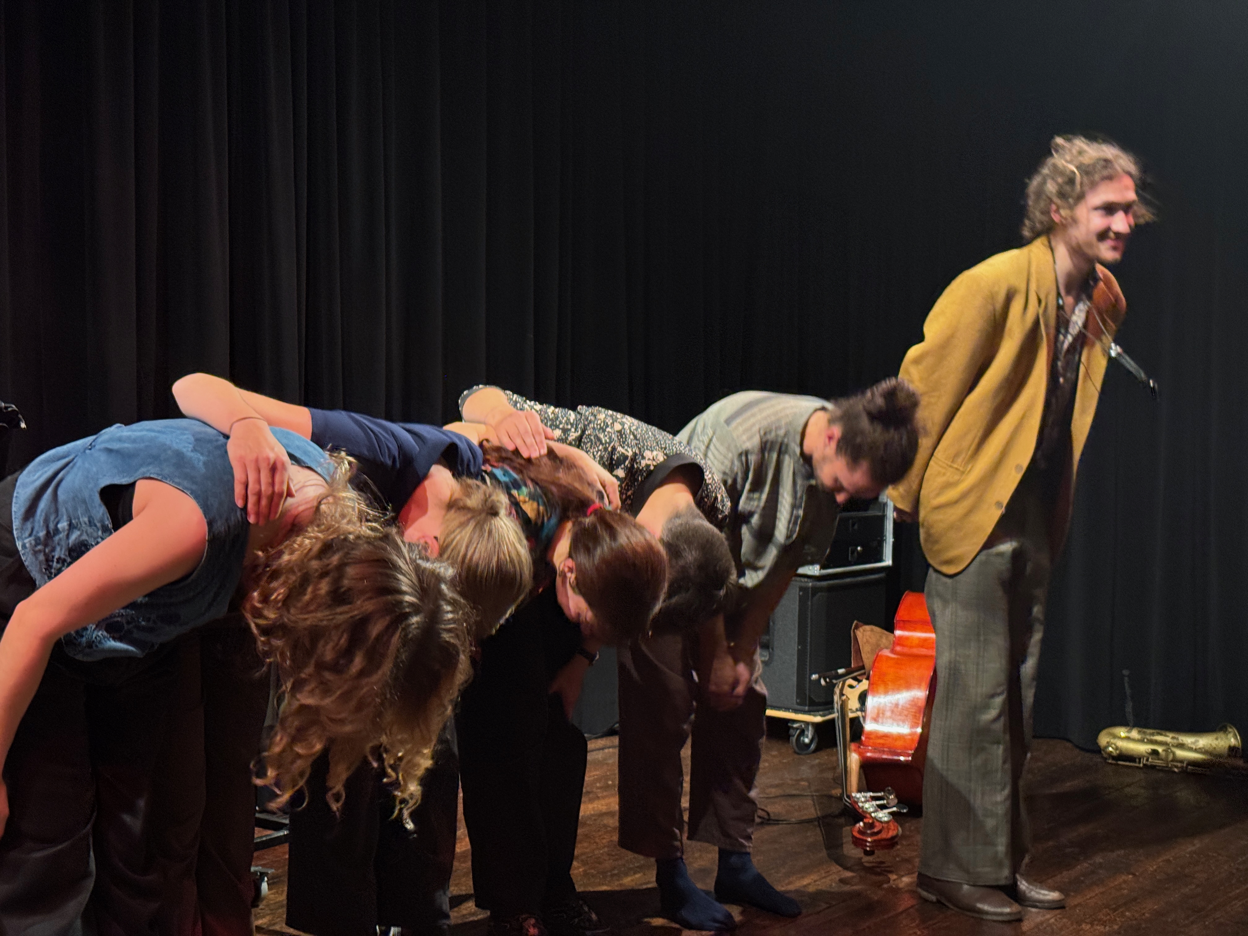 In der gut gefüllten Bandfabrik hat sich das Publikum neugierig eingelassen auf eine ungewöhnliche Klang- und Darstellungswelt voller Überraschungen, Spannung, Harmonie und intensiver Kommunikation. Augen und Ohren wurden positiv gefordert, so dass zur Verarbeitung der gesammelten Eindrücke nach der 1-stündigen Performance das Angebot für Gespräche mit den Künstler*innen intensiv genutzt wurde.