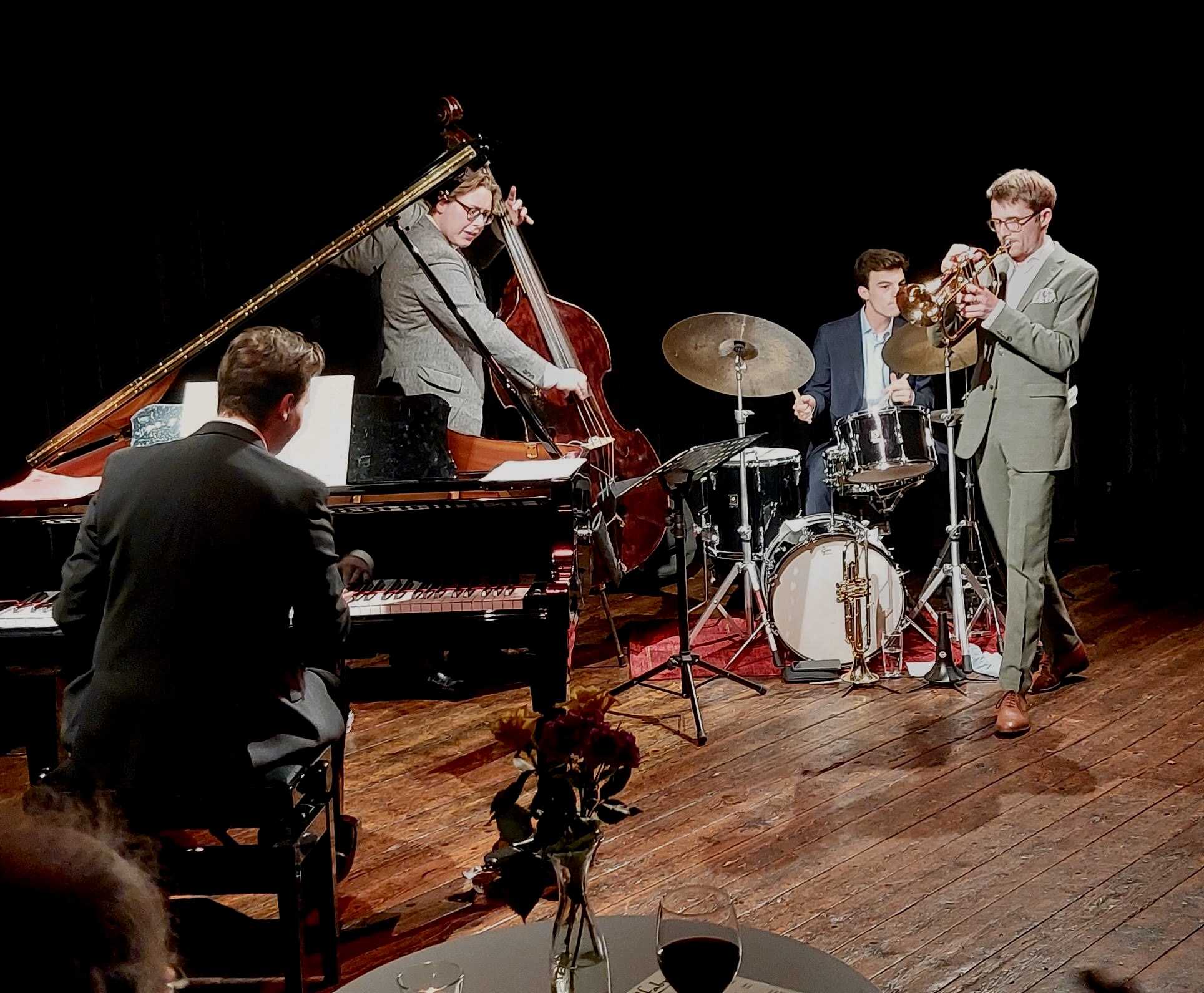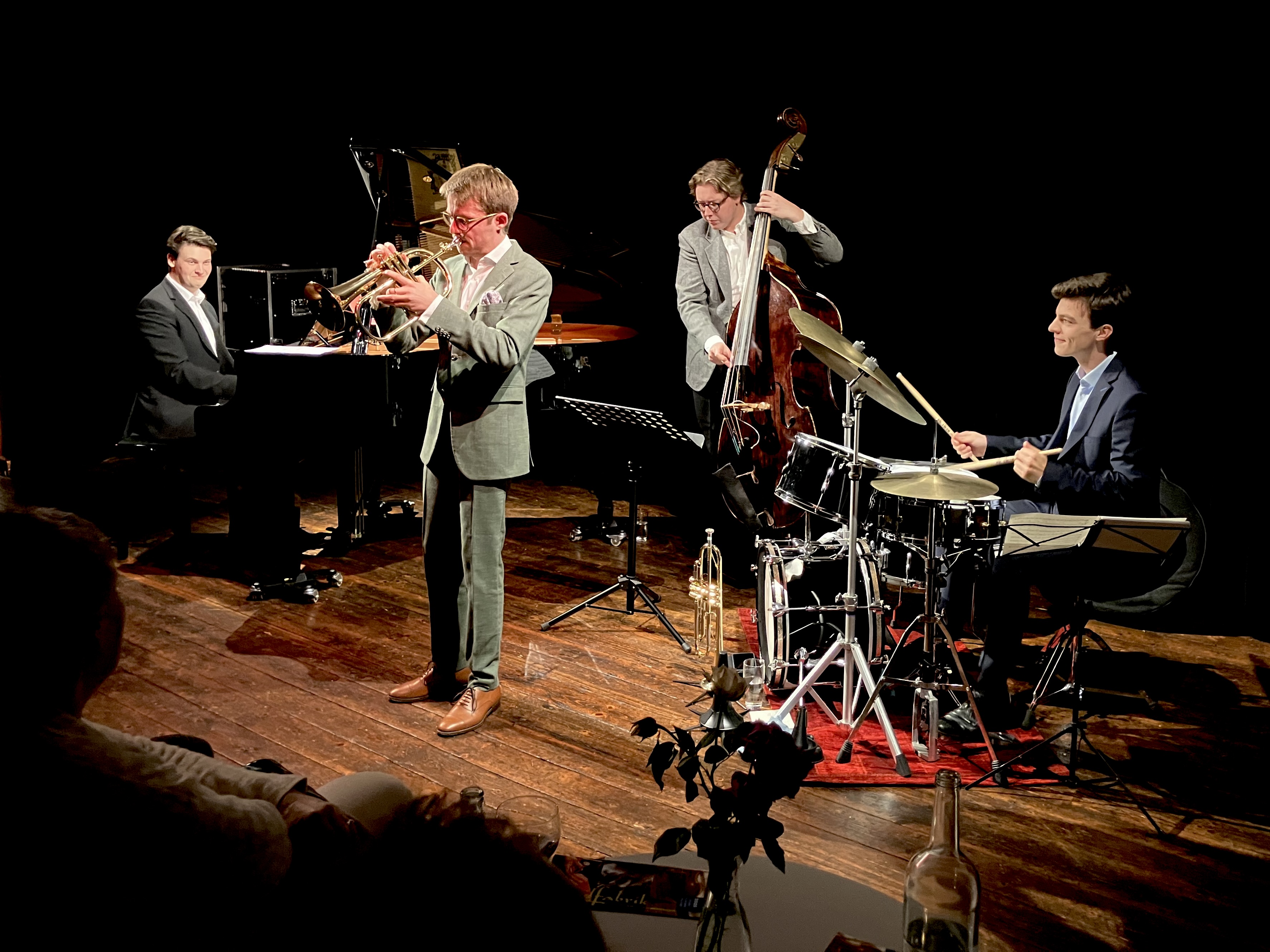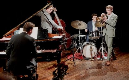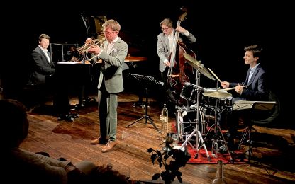 Mit Benedikt Göb und Thimo Niesterok trafen sich zwei herausragende Vertreter der "Next Generation", die ihre musikalische Sprache im Spannungsfeld von Mainstream- und Straight Ahead Jazz gefunden haben. Gemeinsam mit Schlagzeuger Jakob Hein und Bassist Jan Blikslager präsentierte das Quartett in der Bandfabrik ein Programm voller Hingabe an das Repertoire des Great American Songbook. In der Tradition großer Meister wie Ray Brown, Clark Terry oder Oscar Peterson erklang eine Musik, die ihre Frische bis heute bewahrt – und sich durch neue Stimmen immer wieder erneuert und lebendig fortsetzt.
