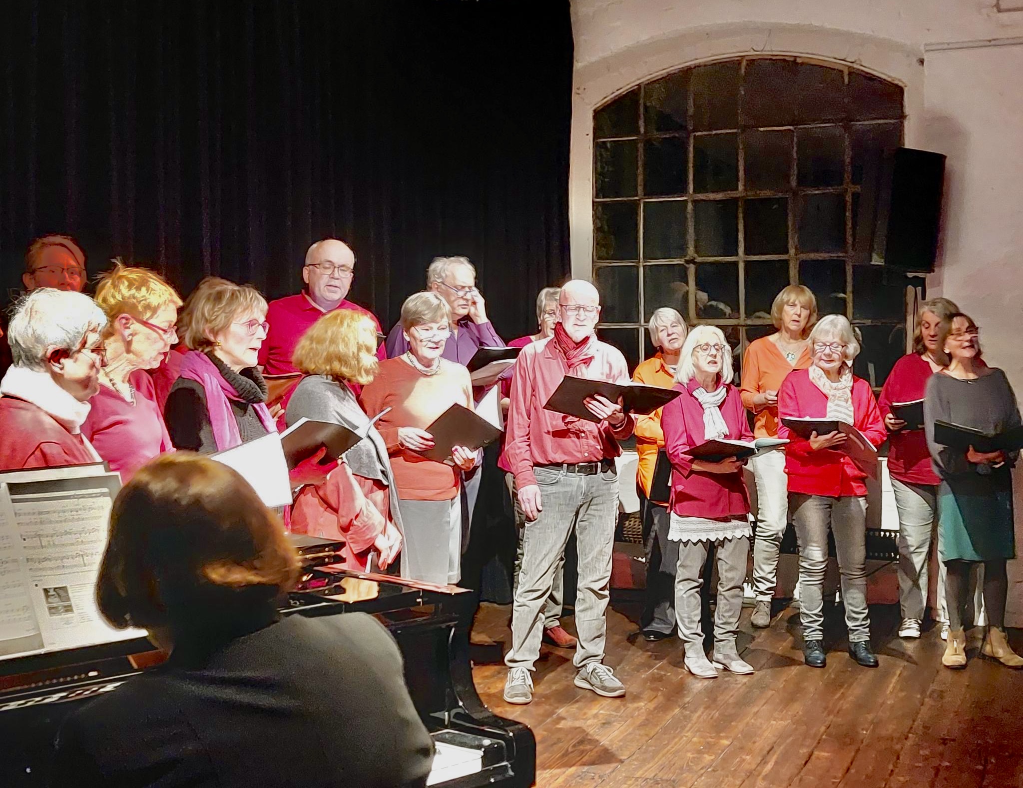 Bereits im vergangenen Juli bereicherte der Chor aus Hatzfeld den Donnerstagabend in der Reihe "Come together – Offenes Haus in der Bandfabrik". Dieses Mal brachten sie eine Mischung aus englischsprachigen Pop- und Rockstücken sowie stimmungsvolle Weihnachtssongs mit in die vollbesetzte Bandfabrik. Die Gäste waren begeistert und sangen aus vollem Herzen mit.