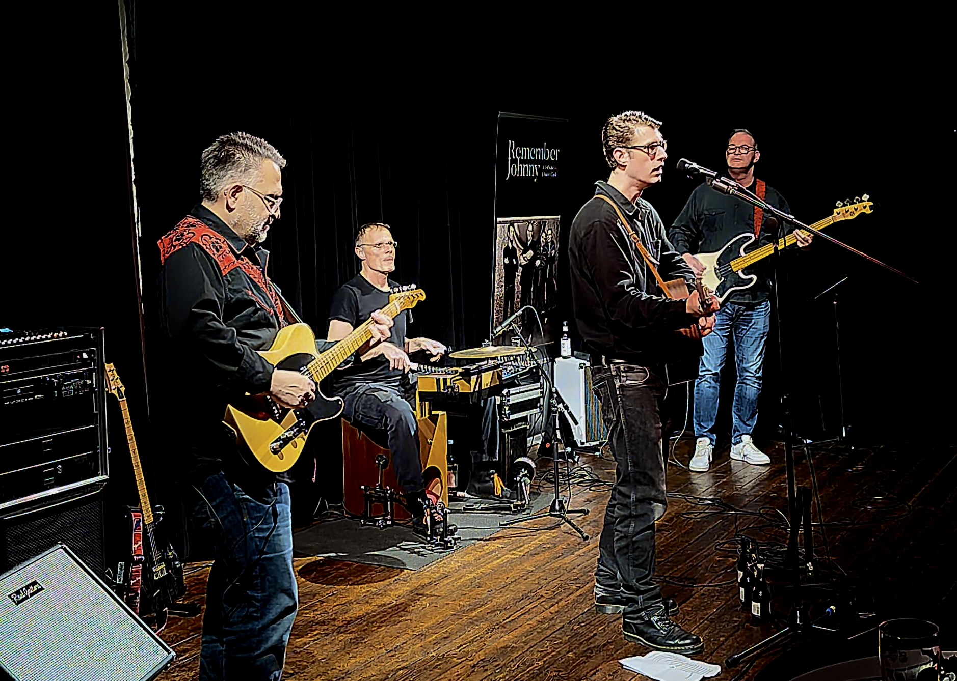 Mit reichlich Live- und Studioerfahrung bot die Band in rund zwei Stunden eine schnörkellose, ehrliche Tribute-Show, in der der Geist des „Man in Black“ spürbar im Raum stand. Klaus Sonntag am Schlagzeug und Oliver Janke am E‑Bass sorgten für den typischen Boom-Chicka-Boom-Groove, der unweigerlich ins Blut ging. Die pointierten Gitarrensoli von Jörg Kartschewski ließen das markante Spiel von Luther Perkins aufleben, während Sascha Jung mit seinem sonoren Bariton den charakteristischen Cash-Sound warm und kraftvoll abrundete.
