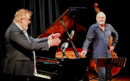Der Vibraphonist Pianist und Komponist Mathias Haus experimentiert gerne mit wechselnden Gästen in Duos und Trios. Diesmal stand der Kontrabassist Dietmar Fuhr mit ihm auf der Bühne der ausverkauften Bandfabrik – und Überraschung: Mathias Haus stand nicht – wie die meisten Gäste erwartet hatten – am Vibraphon, sondern saß am Klavier, was dem Duo eine ganz neue Farbe verlieh.